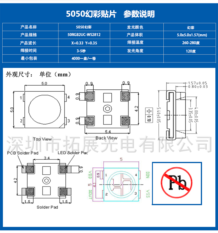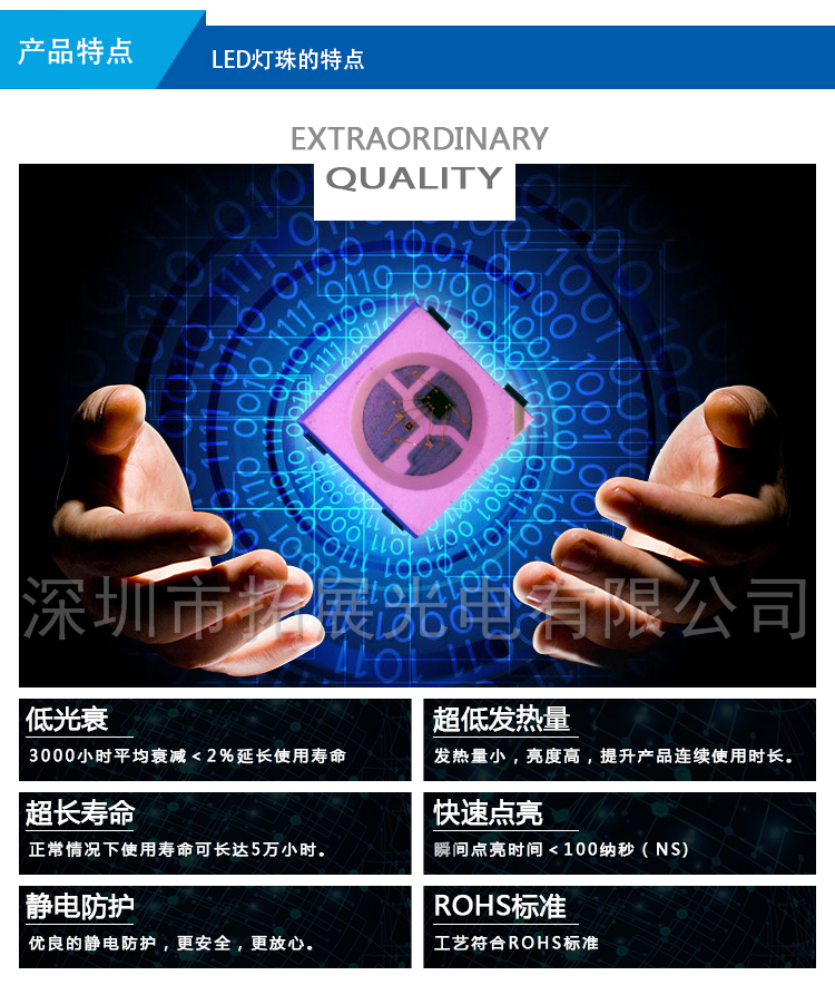 立即咨詢TZ-S6-5050WOA,TUOZHAN(拓展光電)5050RGB內置IC貼片燈珠WS2812LE