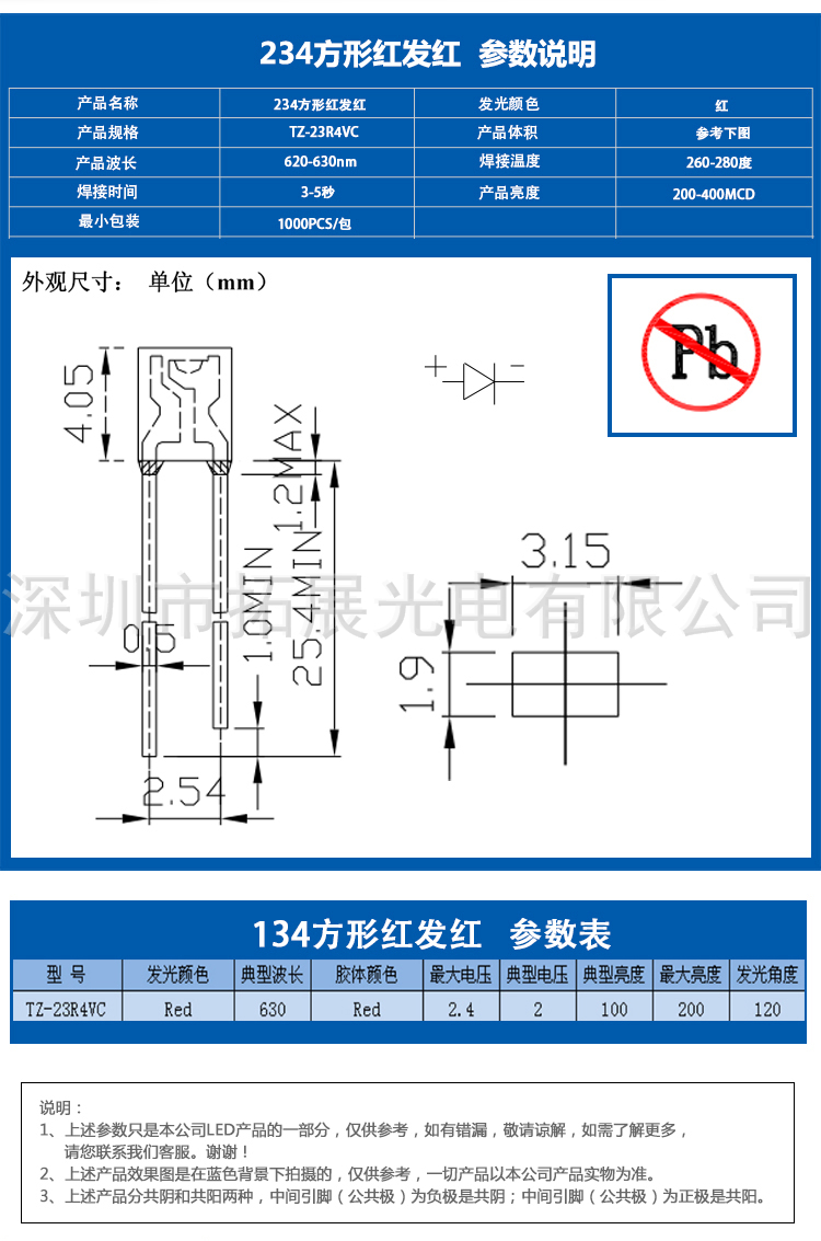 立即咨詢TZ-L2-23FWBR2RCJ120-001,TUOZHAN(拓展光電)2*3*4紅發紅短腳