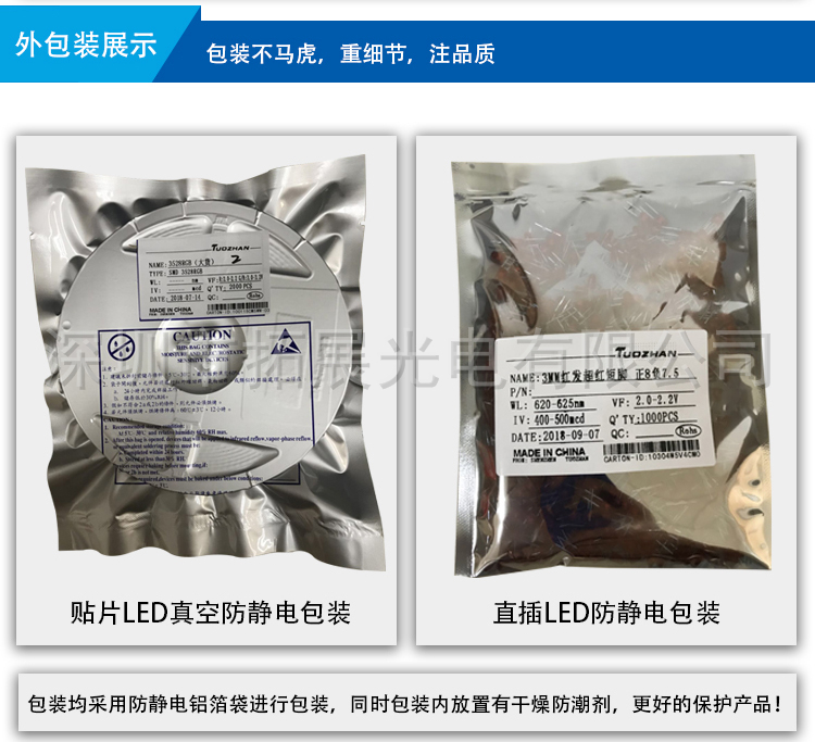 公司的產品種類齊全,主要有各種規格/亮度的(紅、黃、綠、橙、藍、白、紫、粉紅色)LED發光二極管,雙色、全彩、七彩LED,背光專用LED,顯示屏專用LED,紅外發射管、紅外接收頭、光敏管、貼片LED;有直插、貼片、食人魚、大功率等封裝形式,另外還可以根據客戶要求開發特殊型號的LED產品。產品質量和技術指標均達到國際通行標準并通過了ROHS環保檢測。廣泛應用于各類家電、數碼、通信、汽車電子、照明燈飾、電子玩具、交通指示、城市亮化工程等相關生產企業。