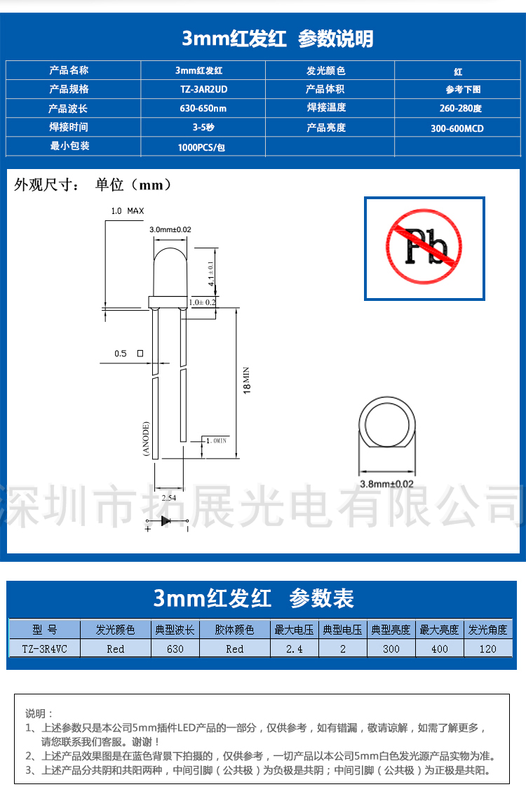 立即咨詢TZ-L2-03YWBO3OCJ30-001,TUOZHAN(拓展光電)3mm橙發(fā)橙LED,3mm圓
