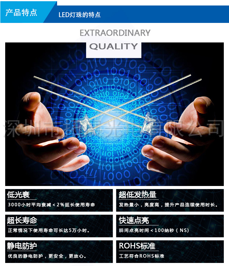 4.特性:快閃,慢閃,循環閃,間斷閃,同步閃,單閃,雙閃,雙色,三色,七彩,全彩,高亮,漸變閃,觸發閃,2PIN雙色無極性,3PIN雙色共陰共陽等發光二極管;