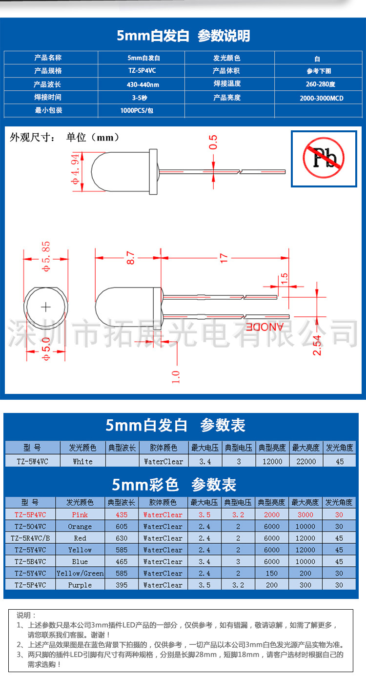 公司的產(chǎn)品種類齊全,主要有各種規(guī)格/亮度的(紅、黃、綠、橙、藍(lán)、白、紫、粉紅色)LED發(fā)光二極管,雙色、全彩、七彩LED,背光專用LED,顯示屏專用LED,紅外發(fā)射管、紅外接收頭、光敏管、貼片LED;有直插、貼片、食人魚、大功率等封裝形式,另外還可以根據(jù)客戶要求開發(fā)特殊型號(hào)的LED產(chǎn)品。產(chǎn)品質(zhì)量和技術(shù)指標(biāo)均達(dá)到國(guó)際通行標(biāo)準(zhǔn)并通過了ROHS環(huán)保檢測(cè)。廣泛應(yīng)用于各類家電、數(shù)碼、通信、汽車電子、照明燈飾、電子玩具、交通指示、城市亮化工程等相關(guān)生產(chǎn)企業(yè)。