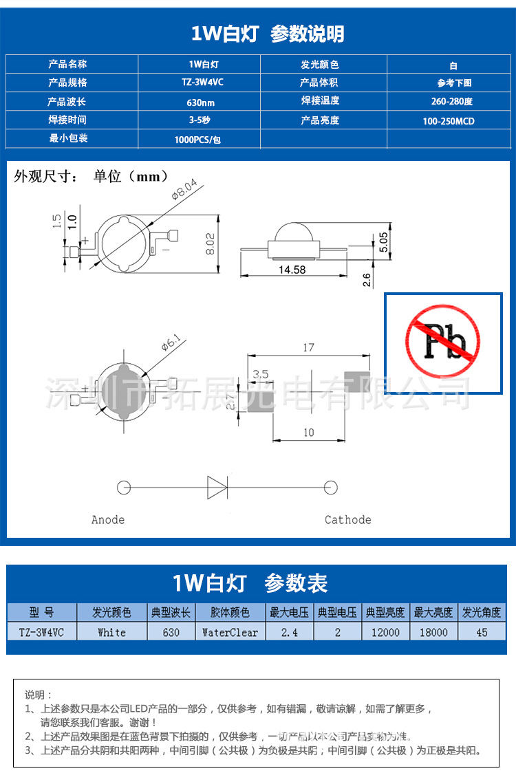 - 產(chǎn)品規(guī)格:1W大功率