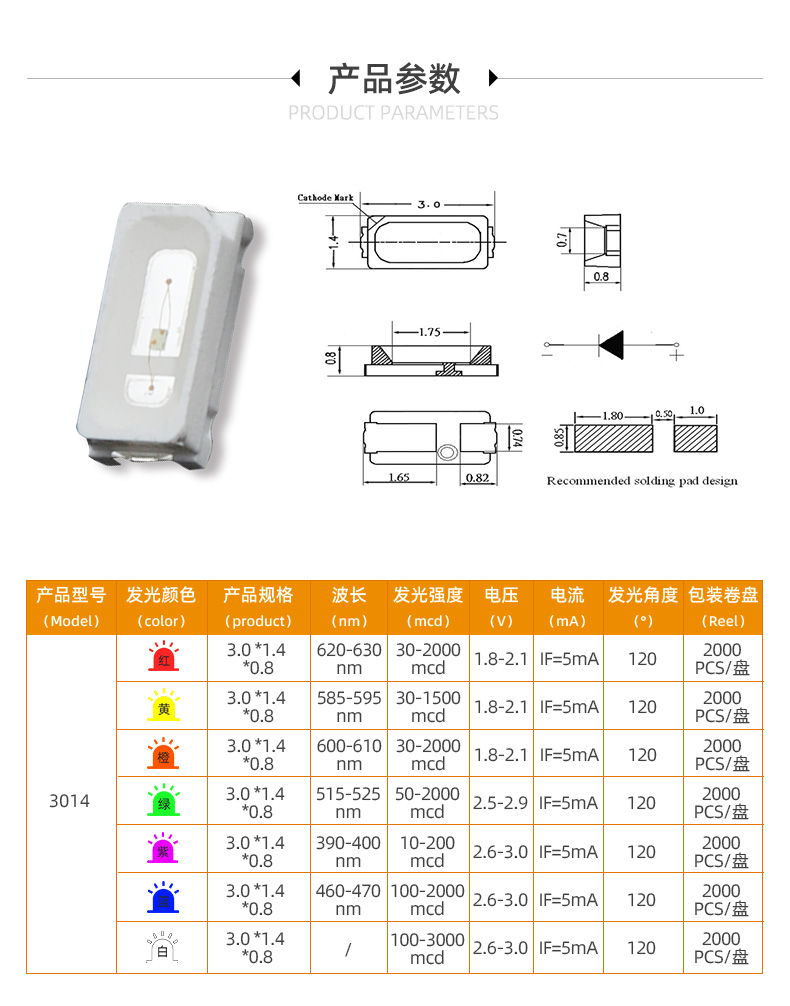 產品亮度:100-2000mcd