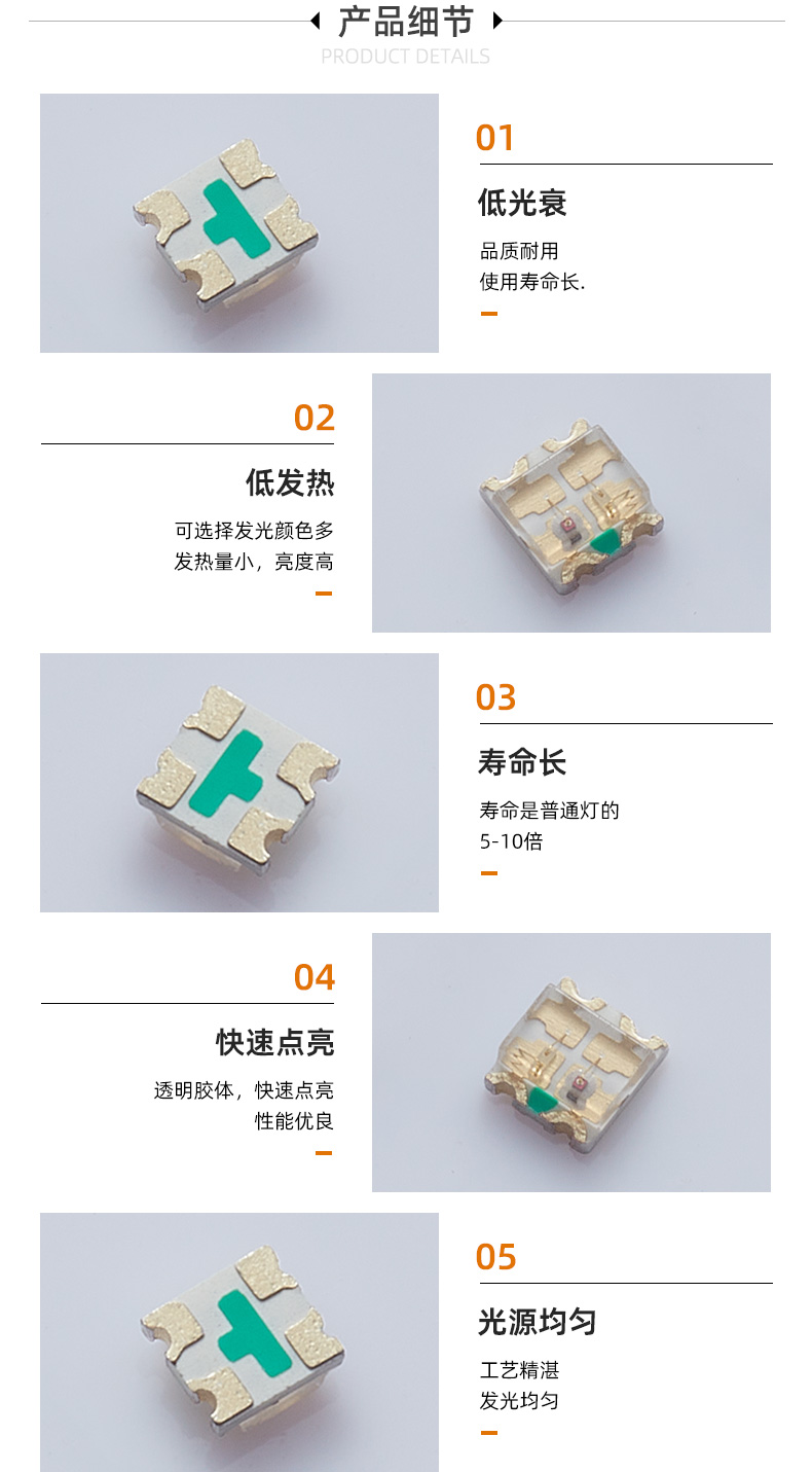 1、本公司采用臺灣全自動固晶機,焊線機,保證產品的一致性,全系產品采用臺灣芯片,耐高溫環(huán)氧樹脂膠水,純金線制成,保證了產品的穩(wěn)定性