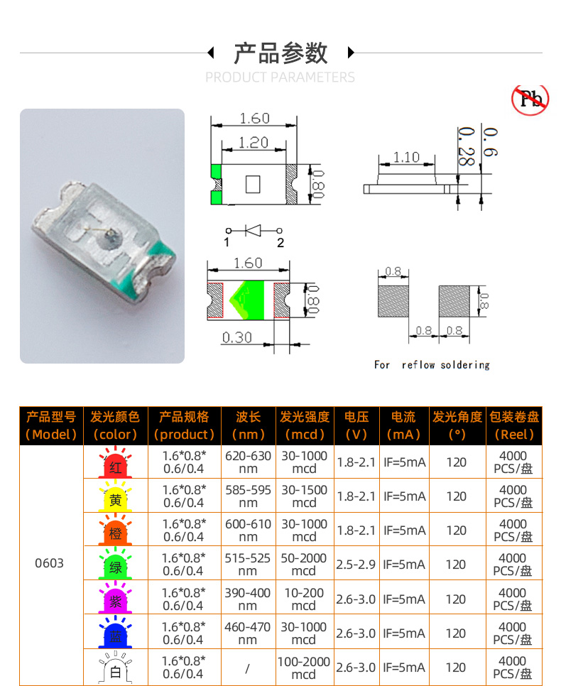更多0603LED貼片燈珠產(chǎn)品訪問:http://www.69ru.cn/tiepianLED0603.shtml